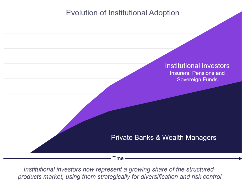 While structured products may be most commonly associated with private banks and wealth platforms, institutional investors – insurers, pensions, sovereign wealth, asset managers, hedge funds and other own account investors -are looking increasingly at the opportunities presented by these instruments.