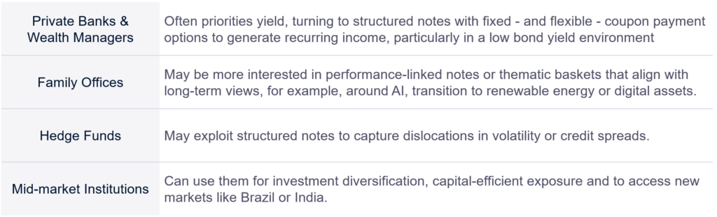 “Fixed income investors already hold bonds. Structured notes feel familiar — but with added flexibility. They can choose the coupon, maturity, and frequency of payments, all while tailoring risk to their needs.”